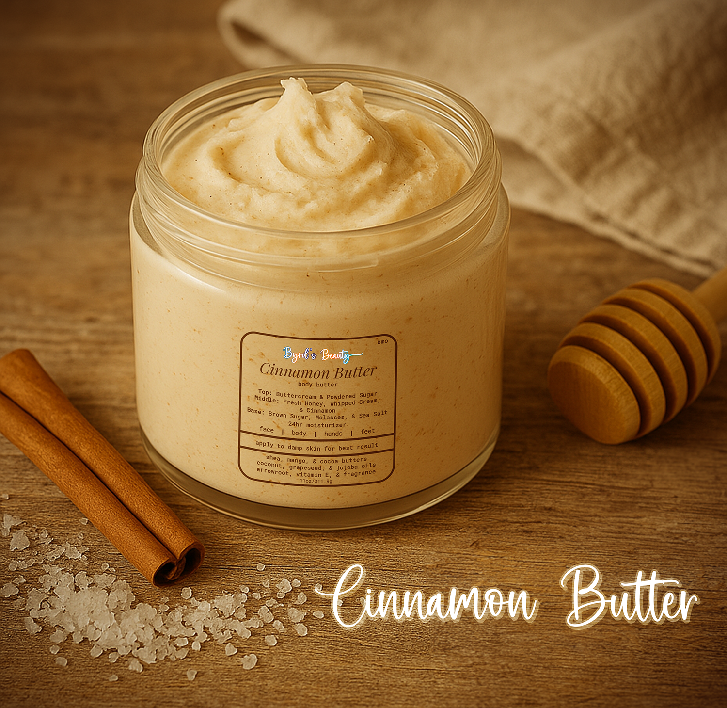 Β Sink into a swirl of sweetness with Cinnamon Butter π―β¨ This rich, creamy whipped body butter delivers the comforting scent of buttery frosting, warm honey, whipped cream, and cozy cinnamon β all layered over deep notes of brown sugar, molasses, and sea salt. Perfect for pampering yourself after a warm bath or as a cozy pick-me-up anytime. Your skin will feel silky, soft, and smell deliciously irresistible. π€